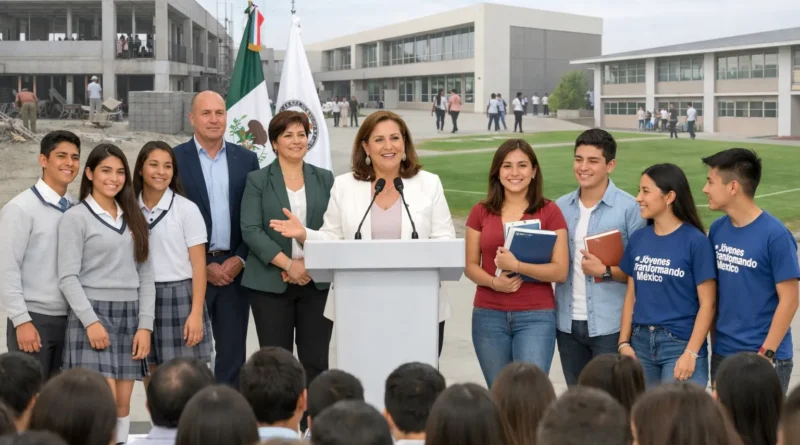 El 24 de febrero de 2026, Sheinbaum presentó Jóvenes Transformando México: 100 nuevos bachilleratos, la Beca Gertrudis Bocanegra para un millón de universitarios, 250 mil plazas laborales y 100 centros comunitarios. La Beca Benito Juárez ya alcanza a 4.1 millones de bachilleres y Jóvenes Escribiendo el Futuro a 425 mil universitarios con pago doble en abril.
